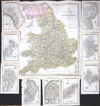 Title: England & Wales Samuel Leigh Antique Copper Engraved Large Map & 11 Small Maps.
