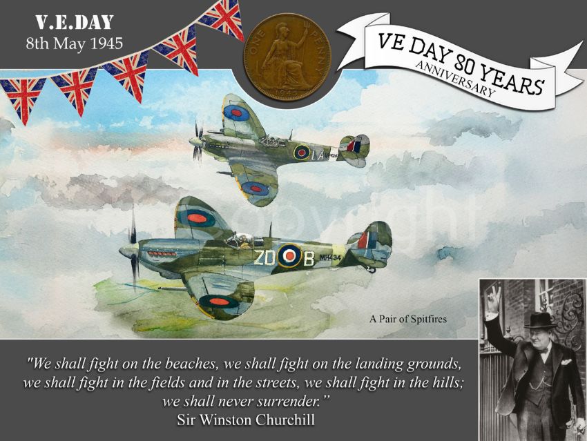 Title: VE Day 80th Anniversary Designed Metal Art Coin Display Spitfires On Patrol