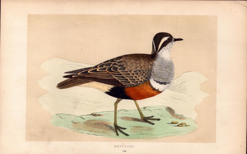 Title: Dotterel Rev Morris Antique History of British Birds 170 Years-Old Engraving.