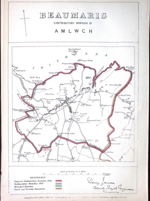 Title: Beaumaris Amlwch District Wales Boundary Commission 157-Year-Old Antique Map.