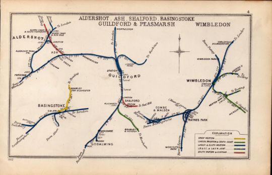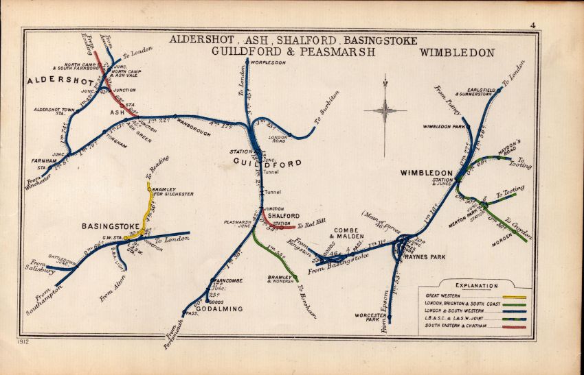 Aldershot Basingstoke Guildford Wimbledon Antique Railway Diagram-4.
