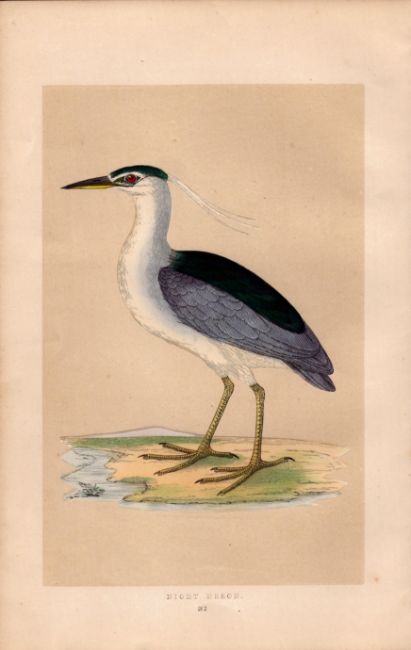 Title: Night Heron Rev Morris Antique History of British Birds 170 Years-Old Engraving.