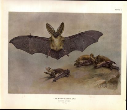 Title: Long-Eared Bat Rare Limited-Edition J.G. Millais Coloured Antique Print-63a.