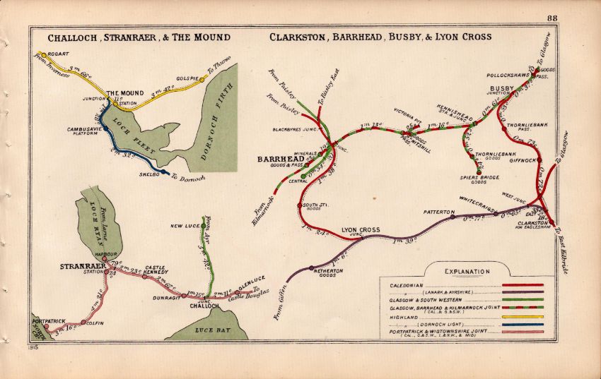 Challoch, Stranraer, Scotland Antique Railway Junction Map-88.