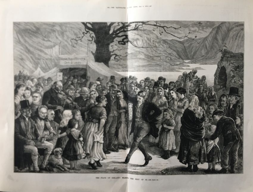 Title: Ireland the Cèilidh & The Craic Large 1879 Antique Woodgrain Print.