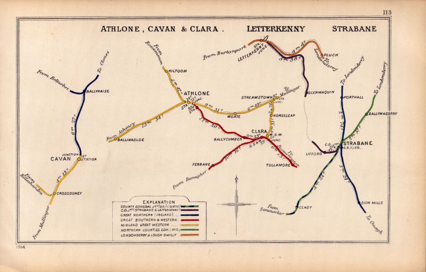 Athlone Cavan Letterkenny Strabane Ireland Antique Railway Diagram-113.