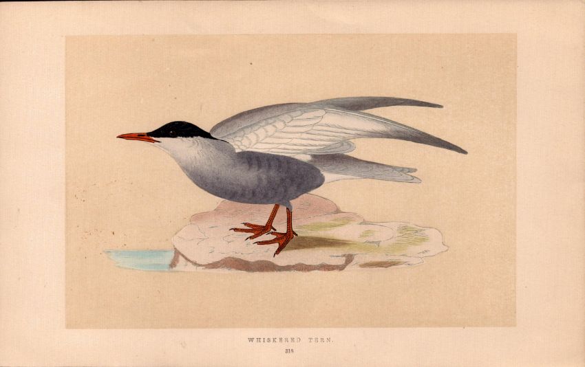 Whiskered Tern Swift Tern  Rev Morris Antique History of British Birds 170 Year-Old Engraving.