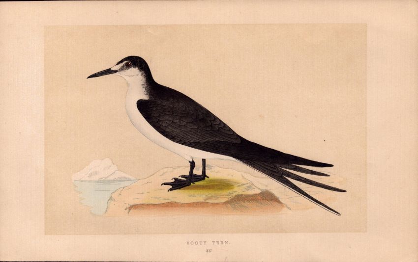 Sooty Tern  Rev Morris Antique History of British Birds 170 Year-Old Engraving.