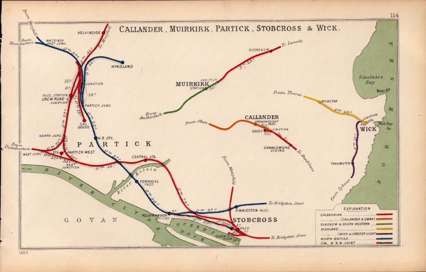 Wick Callander Partick Scotland  Detailed Antique Railway Diagram-114.