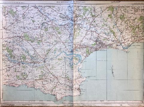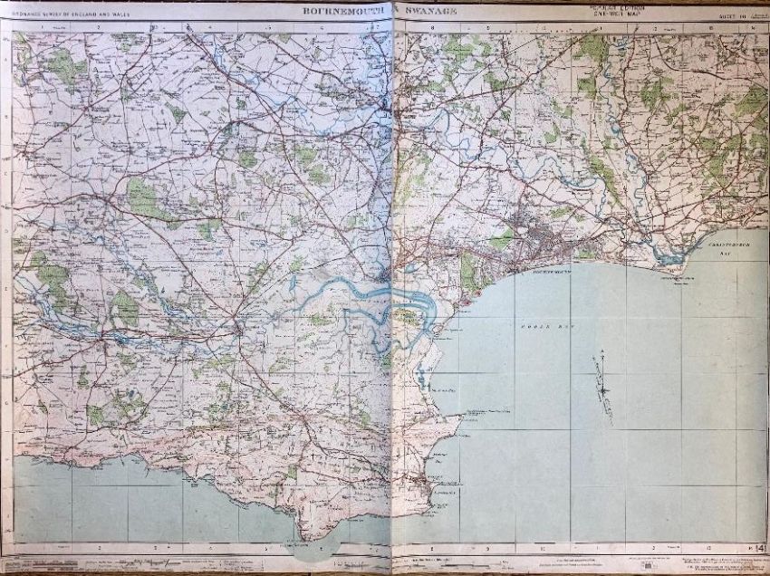 Title: Bournemouth & Swanage, Cloth Backed Antique 1919 Engineering Map.
