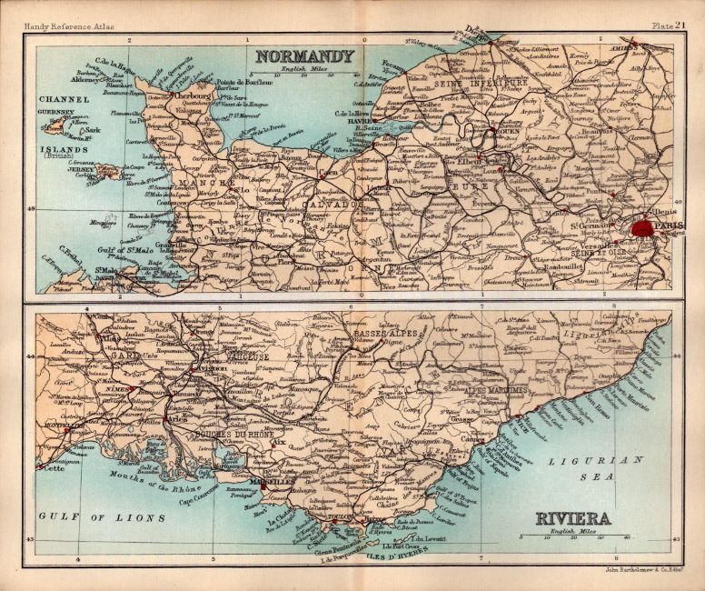 Title: Normandy & The Riviera Double Sided 126 Years-Old Antique 1896 Map.