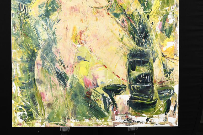 The artist's signature has been etched into the painting (see photos)