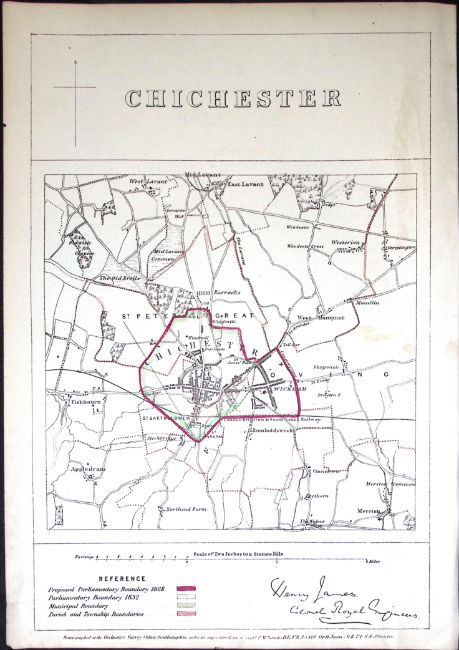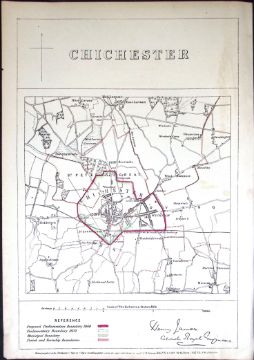 Chichester Sussex Boundary Commission 157-Year-Old Coloured Antique Map.