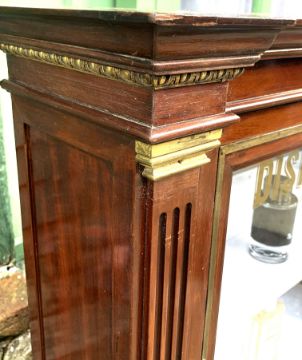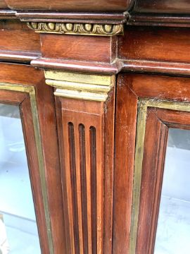 The brass mounts, meticulously crafted and perfectly patinated, provide a striking contrast to the warm tones of the mahogany.