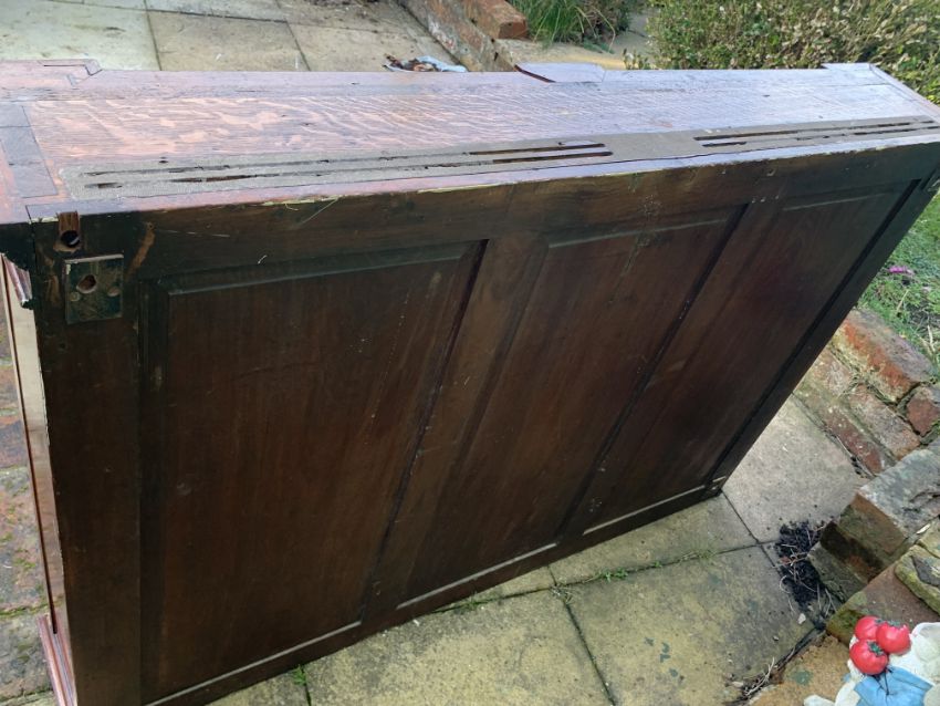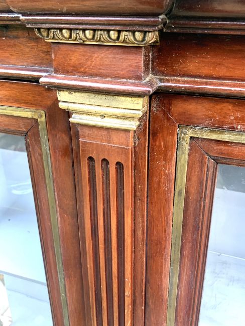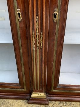 The moulded outswept cornice adds a touch of grandeur, while the pair of glazed vitrine doors offer a tantalizing glimpse into the treasures within.