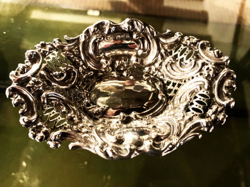 The silver retains its bright finish and the floral decoration remains crisp and well-defined.