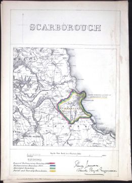 Title: Scarborough Yorkshire Boundary Commission Coloured 157-Year-Old Antique Map.