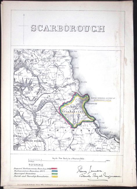 Scarborough Yorkshire Boundary Commission Coloured 157-Year-Old Antique Map.