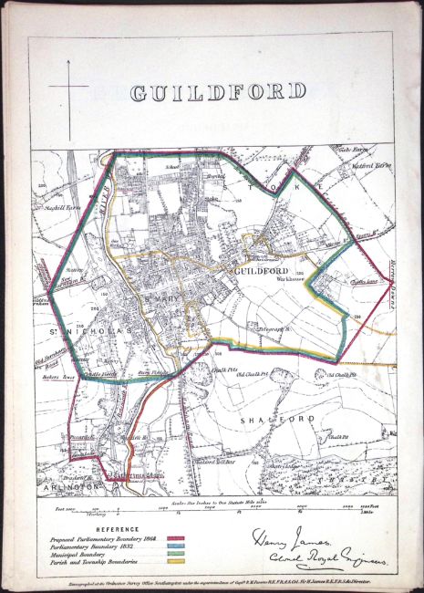 Guildford London Boundary Commission 157-Year-Old Coloured Antique Map.