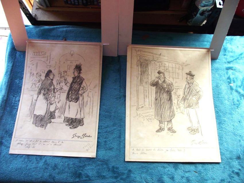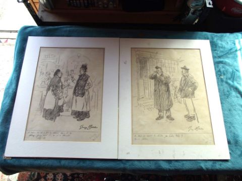 Two original charcoal cartoons by the famous George Belcher which will look great when framed.