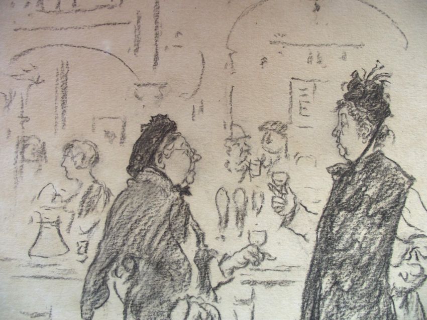 Women in Bar - Actual cartoon - 14 1/4" high x 11 1/4" wide within margins