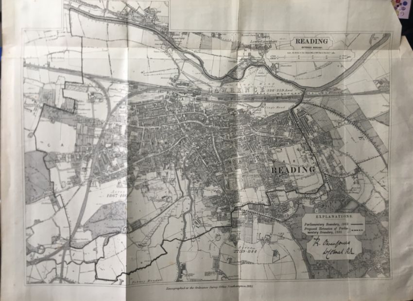Antique 139 Years-Old Scarce Map City of Reading 1885 Boundary Changes.