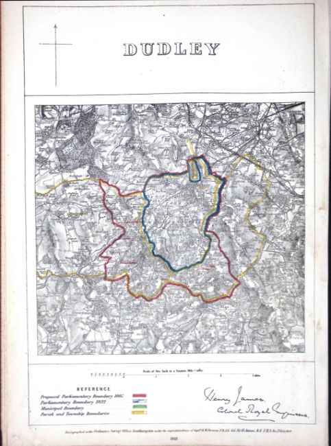 Title: Dudley Midlands Boundary Commission 157-Year-Old Coloured Antique Map.