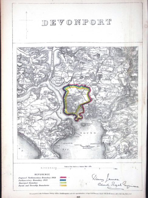 Title: Devonport Devon Boundary Commission 157-Year-Old Scarce Coloured Antique Map.