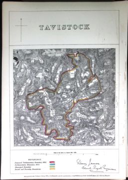 Title: Tavistock Devon Boundary Commission 157-Year-Old Coloured Antique Map.