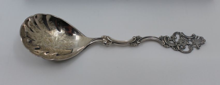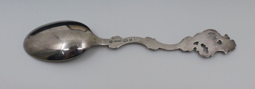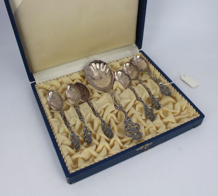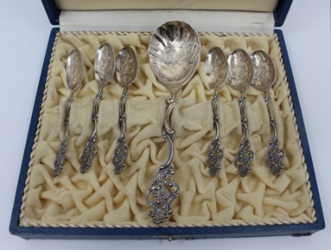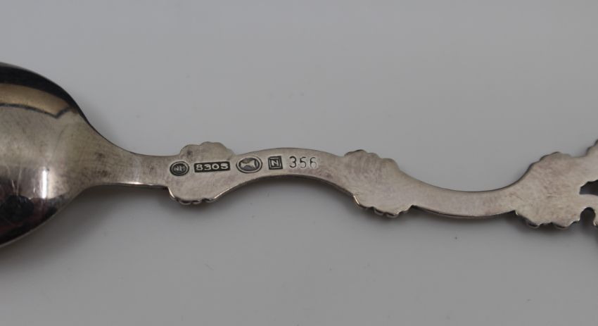 Set of ornate engraved silver spoons by Bergen silversmiths Thorvald Marthinsen Sølvvarefabrik