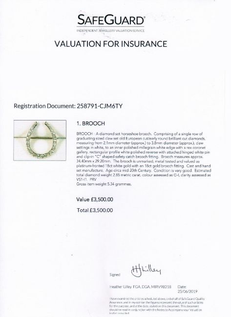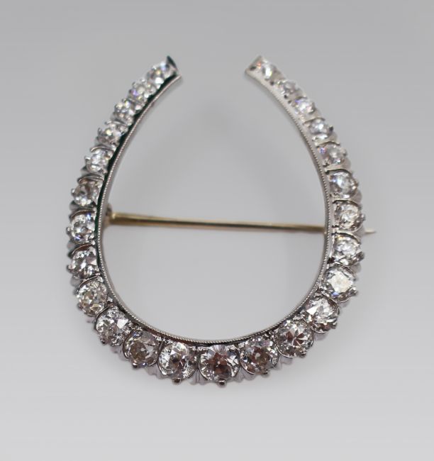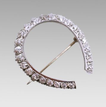 Fine diamond horseshoe form brooch.