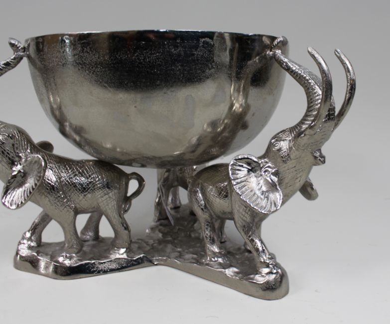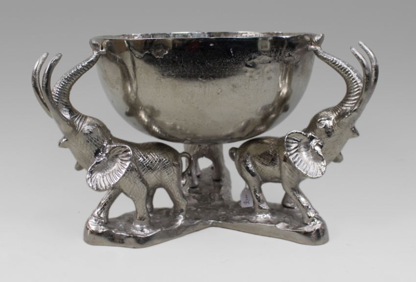 Central bowl supported on three elephants with raised trunks