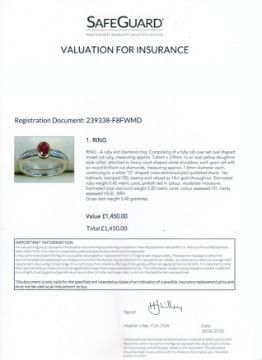 Fully rub over setting to the ruby with an oval yellow collet attached to heavy court shaped white shoulders.