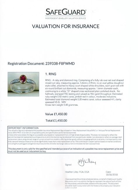 Complete with fully independent insurance valuation by the Birmingham Assay Office from 2018.