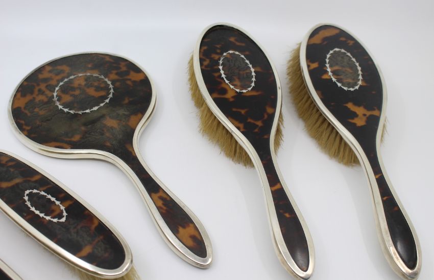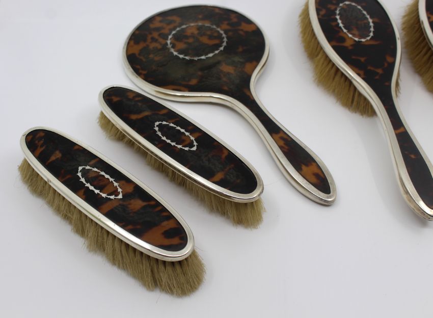 Pieces 5 pieces: pair of clothes brushes, vanity mirror & pair of hair brushes