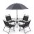 This patio dining set includes 4 foldable chairs with fixing device for simple folding and expanding.