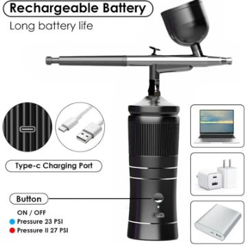 USB Charging - Faster Charging Tech & Longer Working Time: The airbrush gun comes with a USB charging cable, because of the upgraded circuit and battery, it supports 2A fast charging tech, recommended to recharge it via a DC 5V-2A charger, it is much faster. Working time reaches 1-2 hours after fully charged, others can only reach 30-50 minutes. It is not recommended to use the airbrush kit while charging, nor is it recommended to use a charger less than 1A or more than 2A.