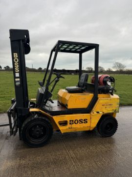 Boss forklift truck. 3 Tonne lift Ford engine tyres fair all round 3.2 m full free lift mast with side well maintained Good condition all round Low hours