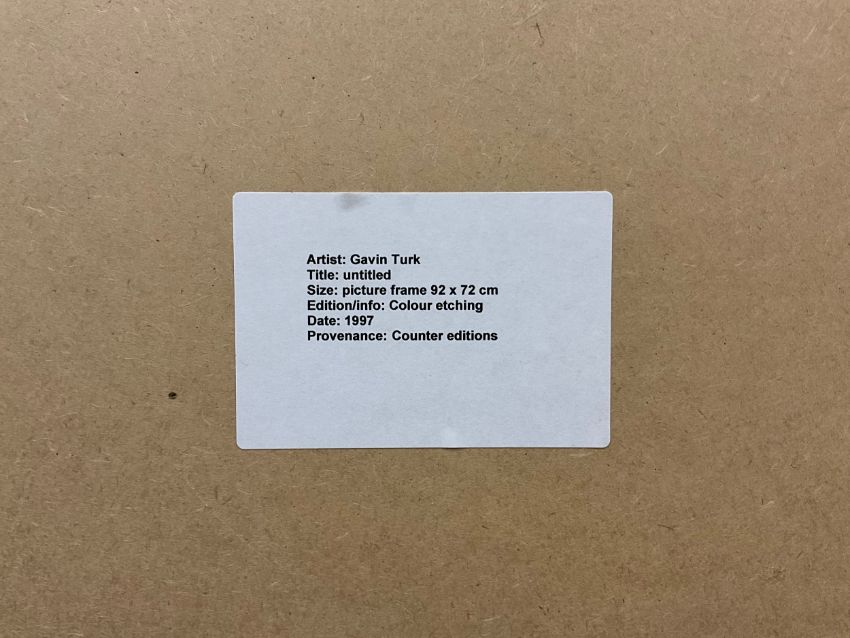 Turk’s work has often focused on everyday images and materials from the urban street. Here he has made a meticulous work of art – a six colour lithograph – portraying something designed to be thrown away. He gently mocks the pretensions of fine art, and questions conventional definitions of value, originality and significance.