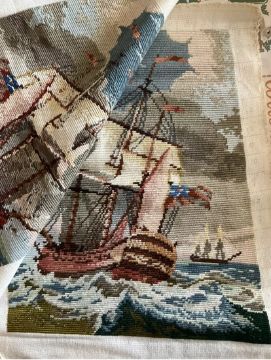 Handmade embroidered tapestry with original threads ordered from Wiehler Company Germany