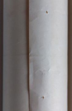 Tear not particularly visible when displayed flat and pinholes can be hidden behind a mount.