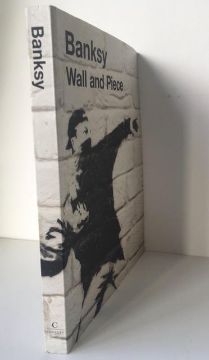 The ultimate publicity machine which is Banksy, Wall and Piece is Witty and subversive with 208 Pages of pictures and self explanation. Large format Banksy book, Wall and Piece, Published 2005, Card back with Binding, Height 26. 8 cm, Width 22.1 cm, width 1.8 cm, Weight: 1071g, Black and white text, photos b+w Colour.