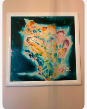 Acrylic on canvas, with resin coat for a glossy finish
