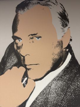 It features a printed signature and a CMOA stamp, replicating elements from Warhol’s classic prints.