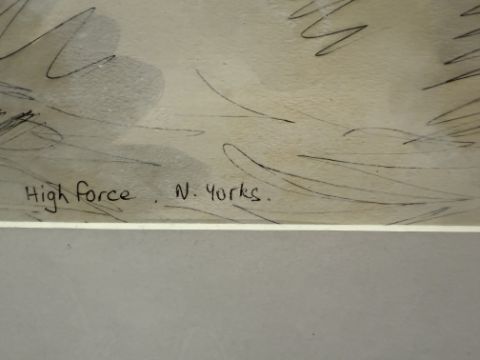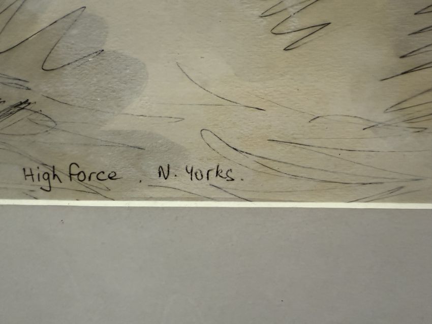 - The drawing captures the rugged beauty of the waterfall and its surroundings.