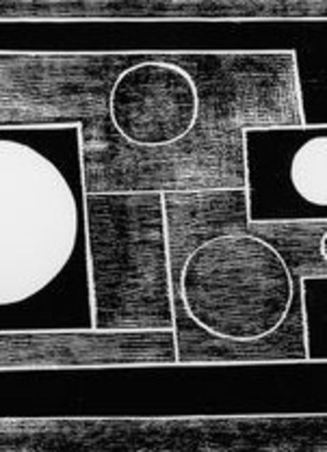 Description – Nicholson's Artwork, Abstract,’5 circles’ for 1934 was originally a small woodcut. This large print, looks great framed or on frame hangers.