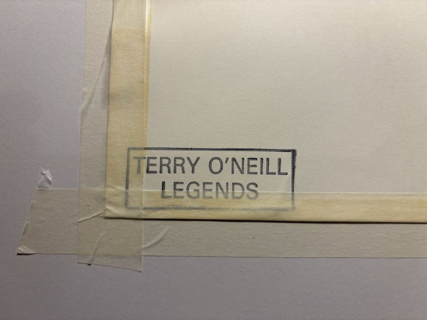 Silver gelatin print, printed later and signed by photographer, Terry O’Neill, in felt tip pen in the lower right margin.