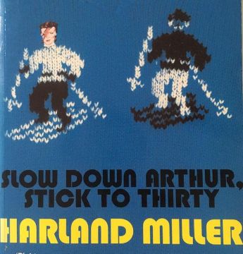 For Harland Miller fans and titled with a typical anecdotal title, ‘Slow Down Arthur, Stick to Thirty’ is a coming of age book print set in the 1980s capturing the differences between Getting out of it, and just getting Out.