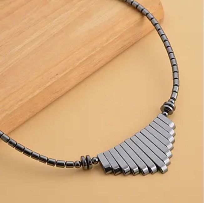 Look no further than this hematite bead necklace.