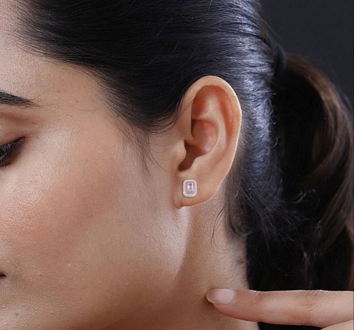 Encircled by a double halo of pink and white cubic zirconias, this set is a ballet of light, each movement a testament to your elegance and vibrancy.